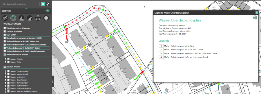Dank der internen Unterstützung unserer Abteilung Tiefbau. Verkehrsplanung sind die Strasseninformationen diverser Zuger Gemeinden in guten Händen und werden fachgerecht verwaltet. Der Gemeinde stehen die Daten live zur Verfügung und es besteht sogar die Möglichkeit, Subthemen selbstständig nachzuführen, falls dies gewünscht ist.